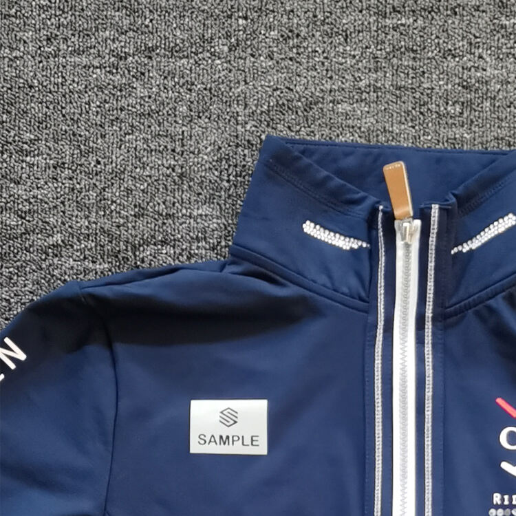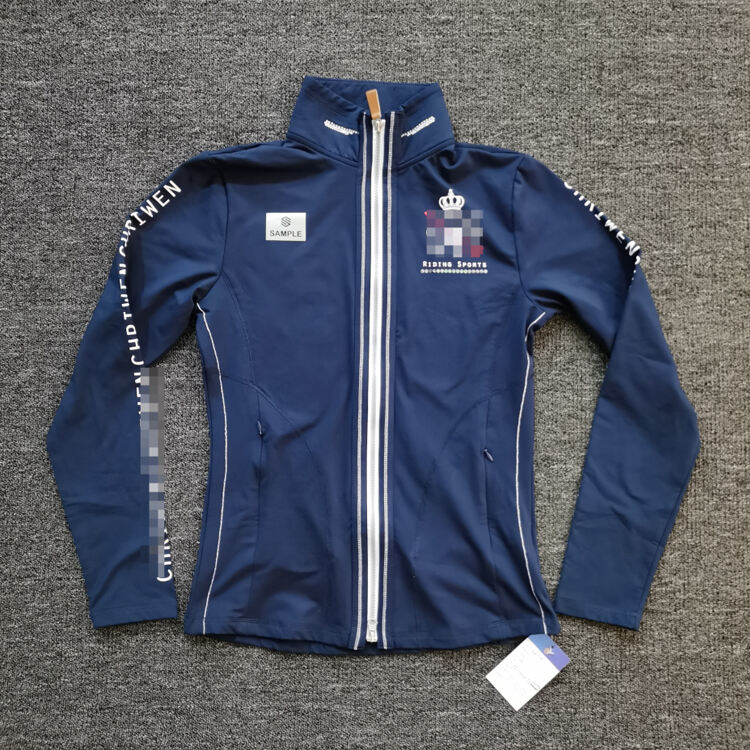 Equestrian French Terry hooded sweatshirt made from cotton-spandex blend or client-supplied fabrics. Features custom logo options including premium foil stamping (gold/silver) techniques. Ideal for training and casual equestrian wear.