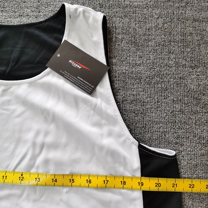 Jersey sacair ghairmiúil inbhuanaithe do fásta agus oige feidhmneacht ar dhá thaobh le dearbhaithe saincheaptha ar gach taobh, déanta as meascán pholuaistéir 100% a thógann go tapa. Ideálach do chluichí fhoirne, seisiúin oiliúna, agus athruithe tapa ar thaobh le linn cluichí.