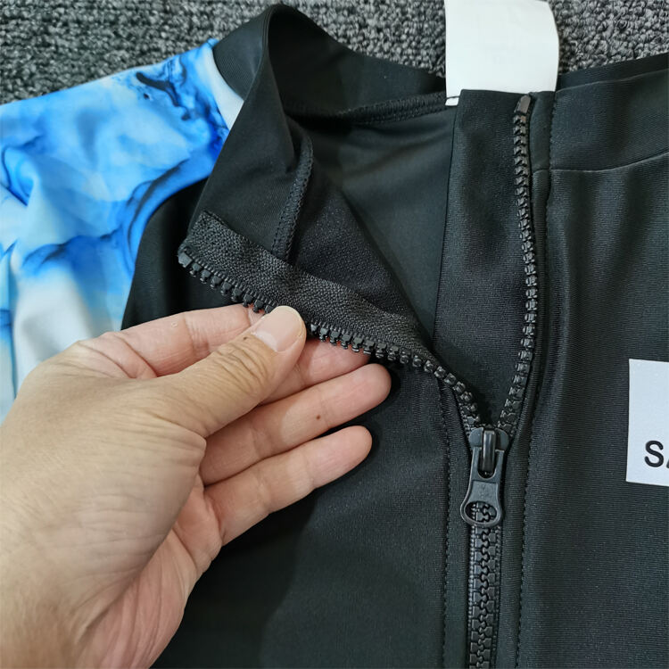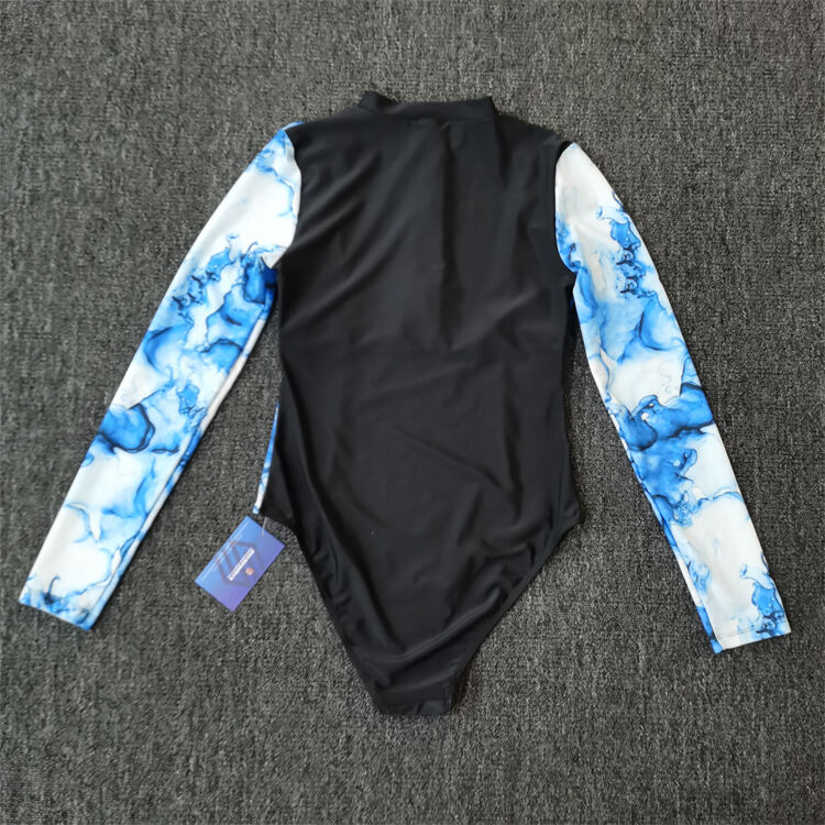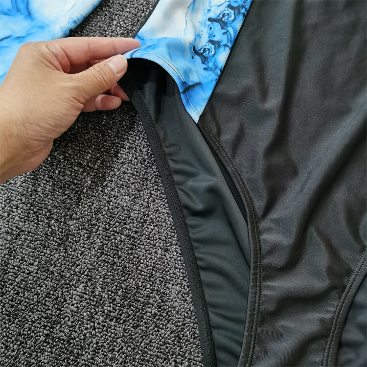 Tunica natatoria ad unum facta ex mistura polyestri-spandex, descripta ad natare sportivum et otium. Servitia impressionis OEM et imaginis legendae accommodata in vestimentis femininis natatoriis.