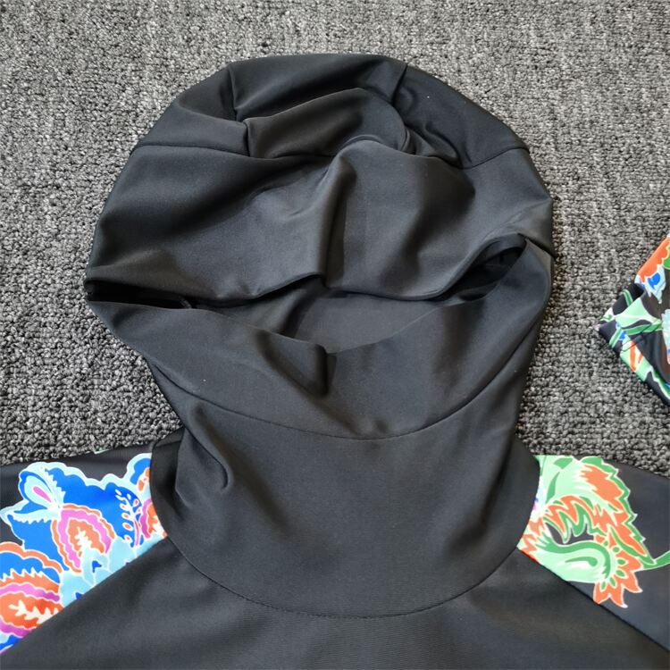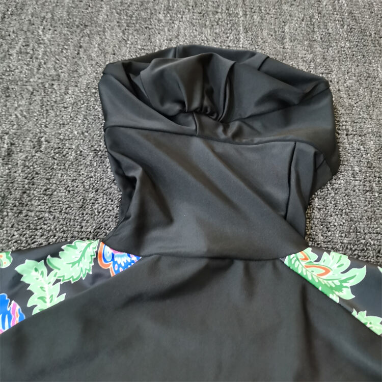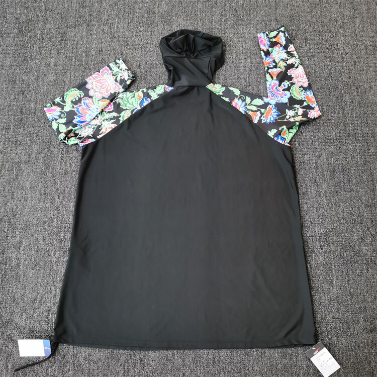 Tunica natatoria ad unum facta ex mistura polyestri-spandex, descripta ad natare sportivum et otium. Servitia impressionis OEM et imaginis legendae accommodata in vestimentis femininis natatoriis.