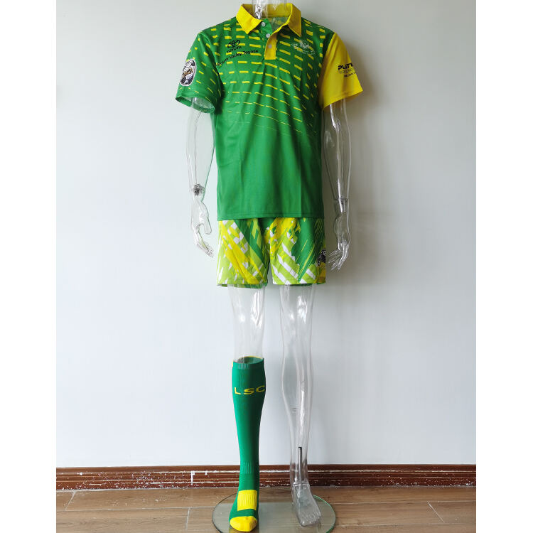 Tilpasset fotballtrøye laget av 100 % polyester, designet for hurtigtørkende ytelse og pustende egenskaper. Har helsublimeringsprint og tilpassing av laglogo for barn og voksne spillere.
