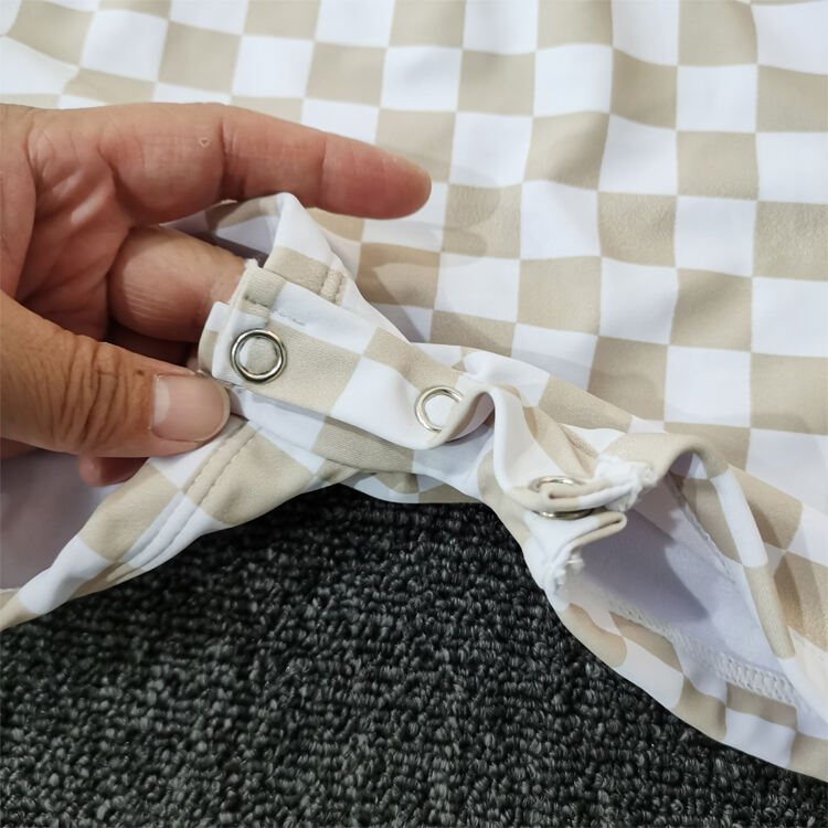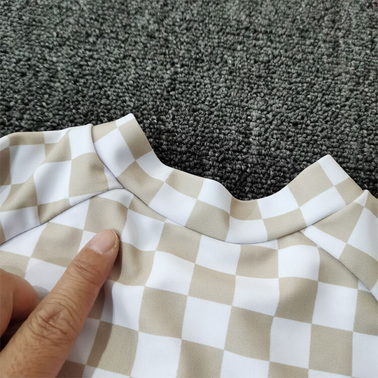 Tilpasset éndelset badedrakt laget av polyester-spandex blanding, designet for sports- og fritidssvømming. Har OEM-trykktjenester og logo-tilpasning for damebadedrakter.