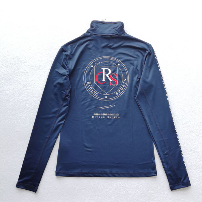 Our high-performance equestrian shirt is crafted from a technical nylon-spandex blend that offers exceptional flexibility, durability, and comfort for riders. For exclusive needs, we also support custom client-supplied fabrics. The shirt features a tailored athletic cut designed for seamless movement in the saddle, with reinforced stitching and ventilation panels for enhanced breathability. Advanced logo customization options include sophisticated foil stamping (gold/silver) and precision printing, allowing teams and brands to create premium personalized apparel. From professional competitions to daily training, this shirt combines functionality with elegance.
