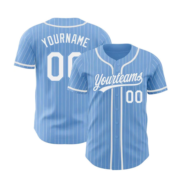 Custom baseball jersey made from 100% polyester, designed for team sports with player number printing and logo customization. Ideal for games and training.