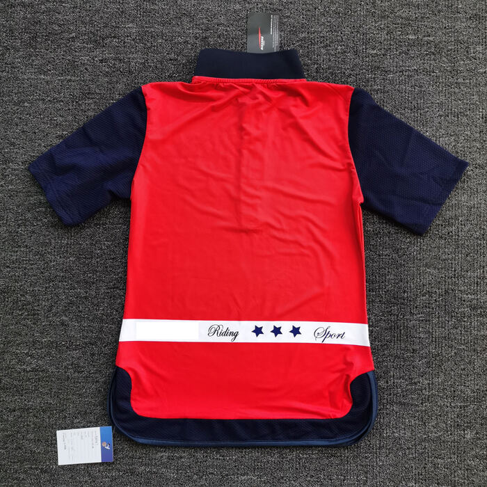 Tricoul nostru echipat pentru echita este realizat dintr-un amestec tehnic de nailon și elastan, oferind o flexibilitate, durabilitate și confort excepționale pentru călăreți. Pentru nevoi exclusive, susținem și materiale personalizate furnizate de client. Tricoul are o tăiere sportivă ajustată, concepută pentru o mișcare fără efort în șa, cu cusături întărite și panouri de ventilație pentru o respirație îmbunătățită. Opțiunile avansate de personalizare a logoului includ aplicarea sofisticată cu folie (aurie/argintie) și imprimarea precisă, permițând echipelor și brandurilor să creeze îmbrăcăminte personalizată de înaltă calitate. De la competiții profesionale până la antrenamente zilnice, acest tricou combină funcționalitatea cu eleganța.